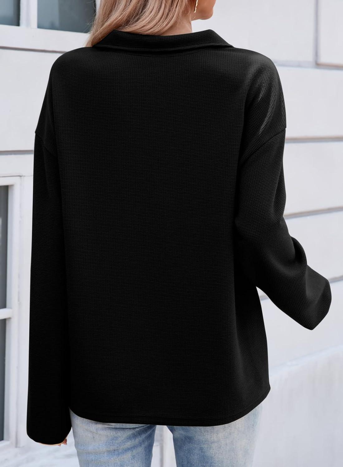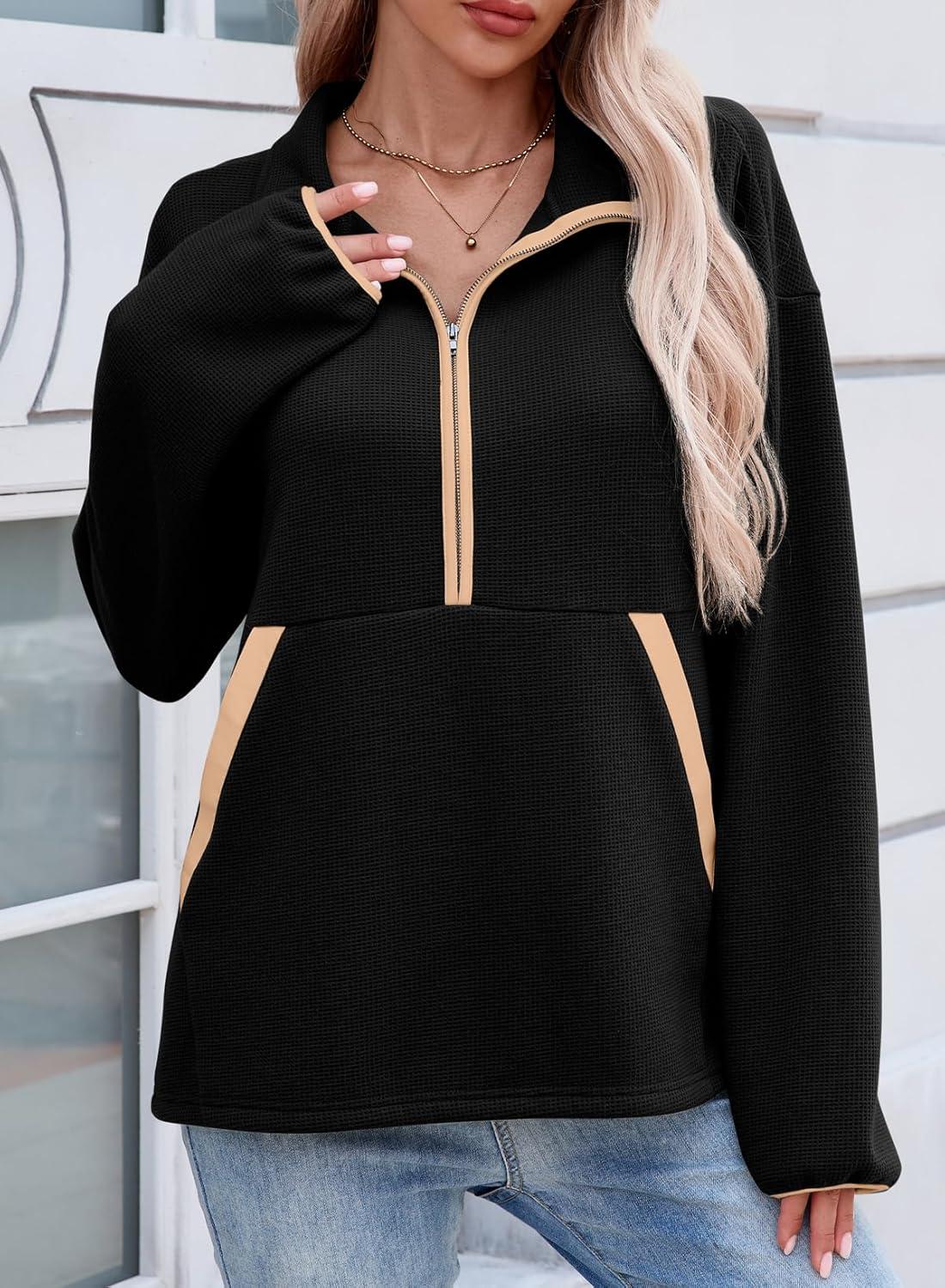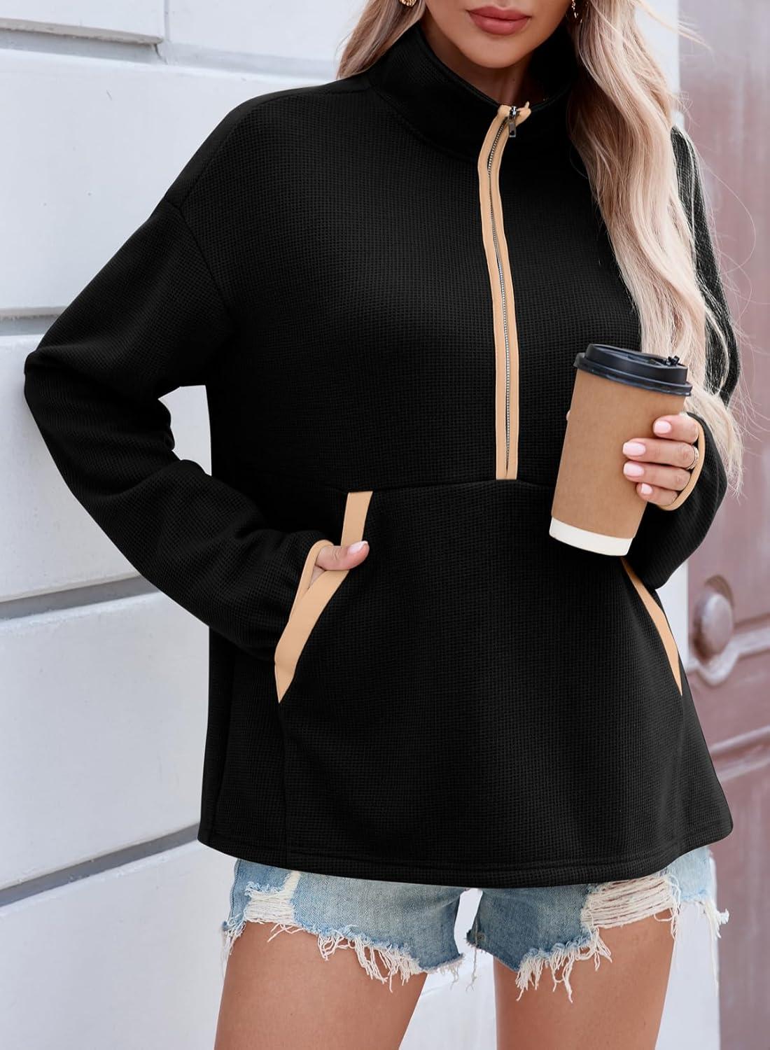 SHEWIN Womens Sweatshirt Casual Long Sleeve Half Zip Pullover Lightweight Sweatshirts Tops Fall Fashion Outfits 2025(Black)