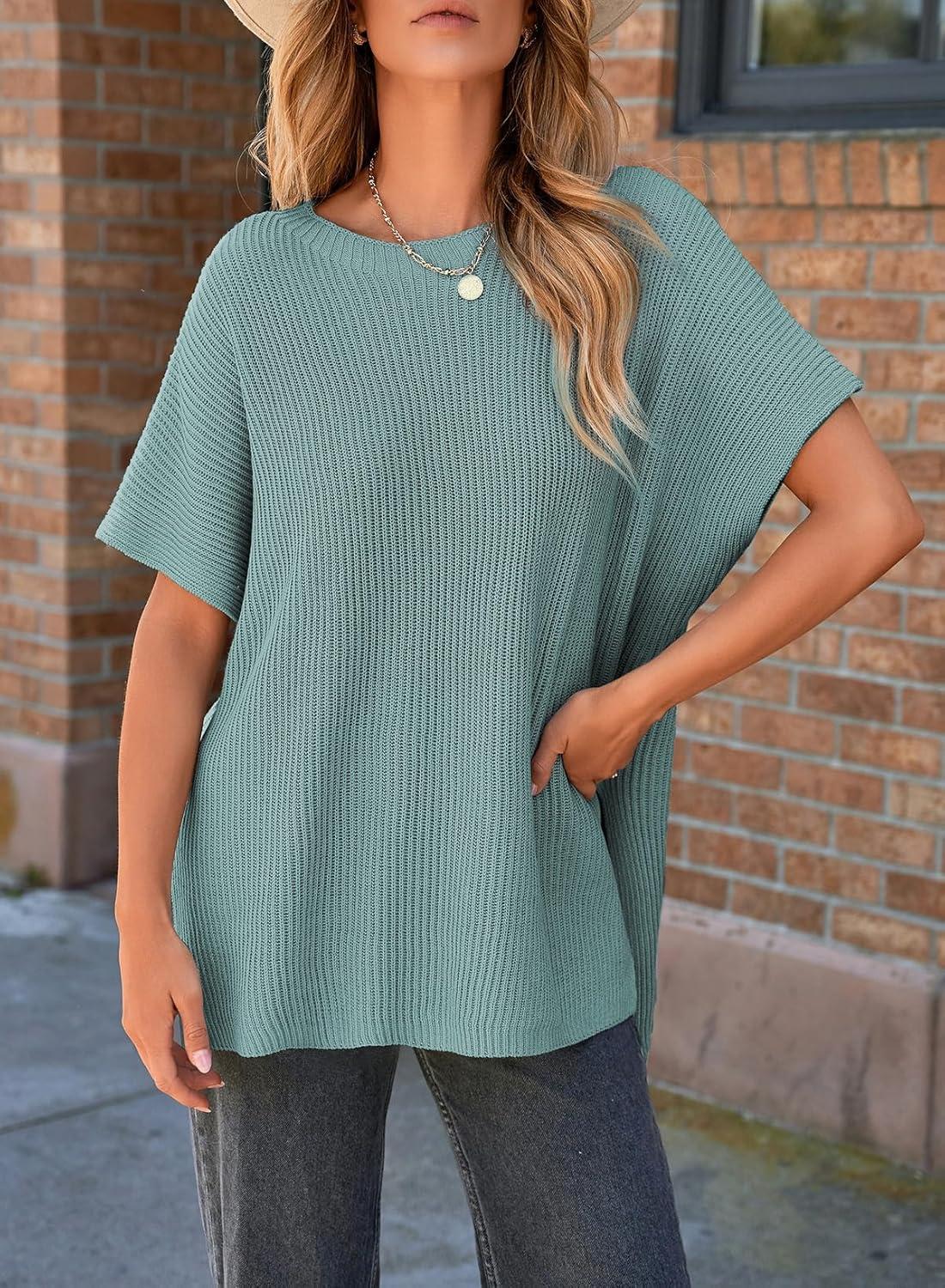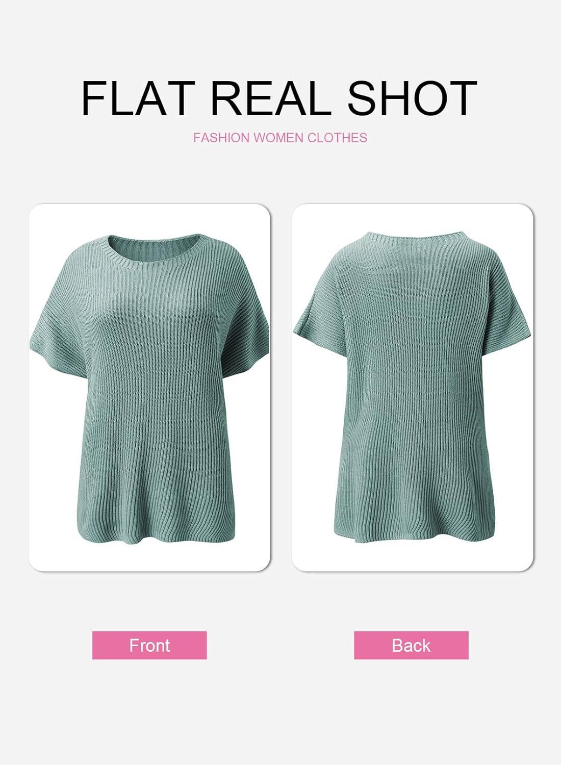 SHEWIN Womens Tops Crewneck Short Sleeve Sweater Causal Tunic Tops Lightweight Summer Sweaters for Women(B Haze Blue)