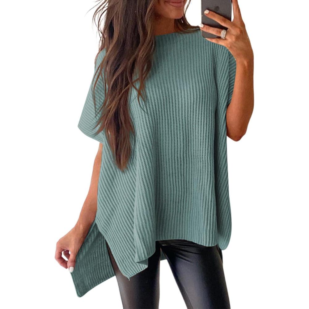 SHEWIN Womens Tops Crewneck Short Sleeve Sweater Causal Tunic Tops Lightweight Summer Sweaters for Women(B Grey)