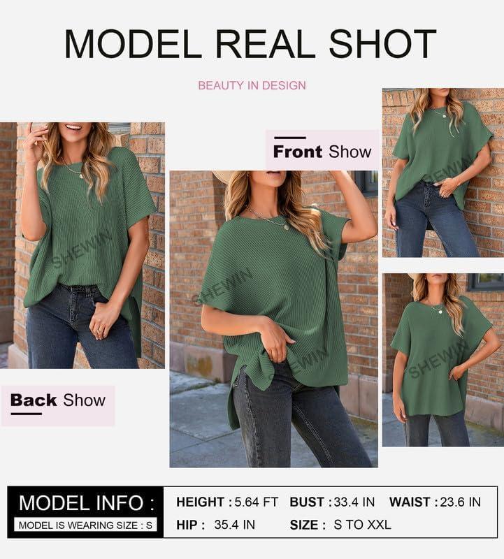 SHEWIN Womens Tops Crewneck Short Sleeve Sweater Causal Tunic Tops Lightweight Summer Sweaters for Women(B Mineral Red)