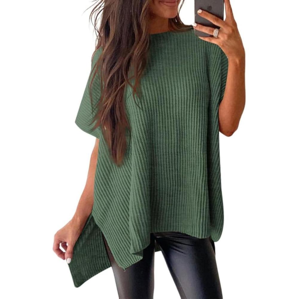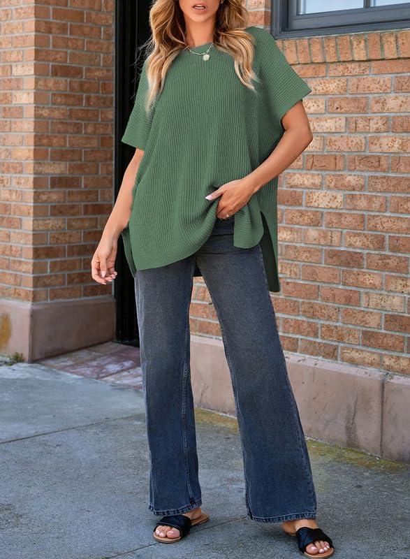 SHEWIN Womens Tops Crewneck Short Sleeve Sweater Causal Tunic Tops Lightweight Summer Sweaters for Women(B Mist Green)