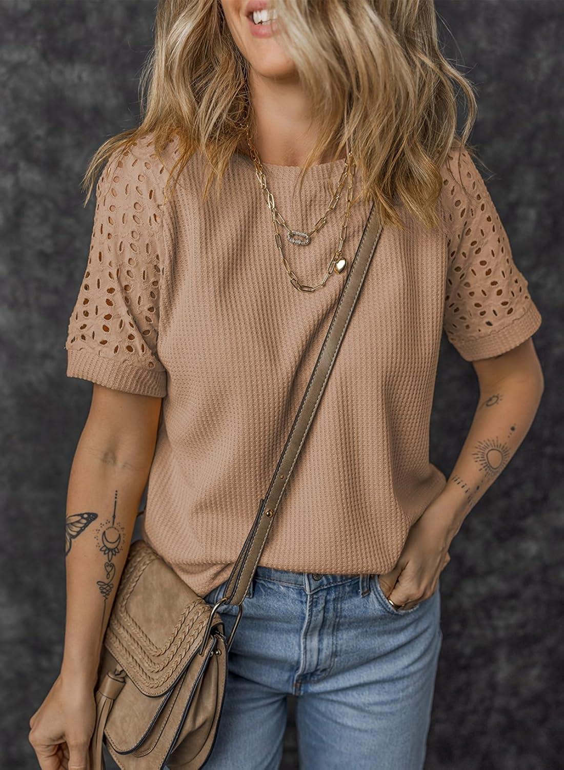 Our holiday sale features the best deals on SHEWIN Women’s Waffle Knit Tops Casual Crew Neck Hollow Out Raglan Short Sleeve Summer T-Shirts Blouses(B Smoke Gray) and accessories. Shop now and save!