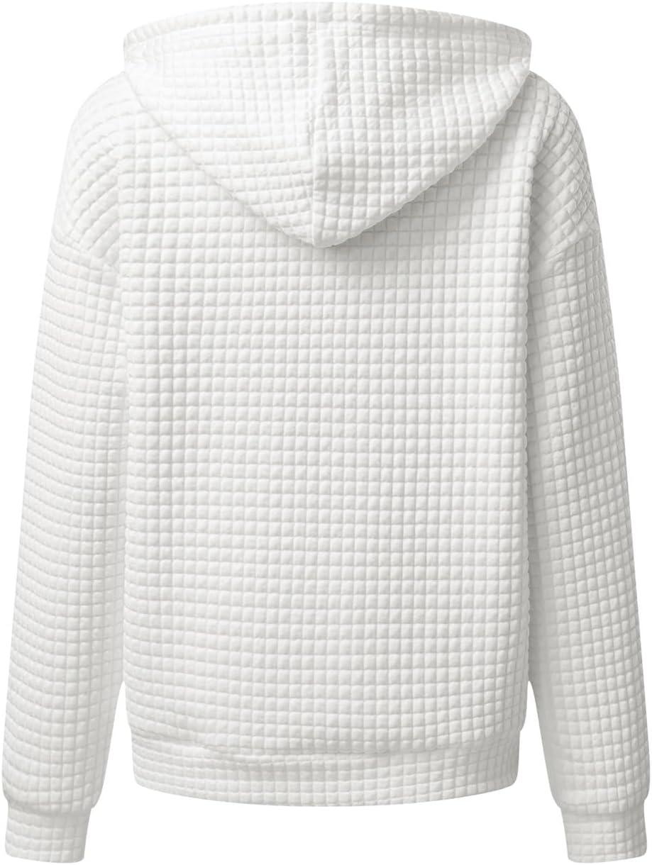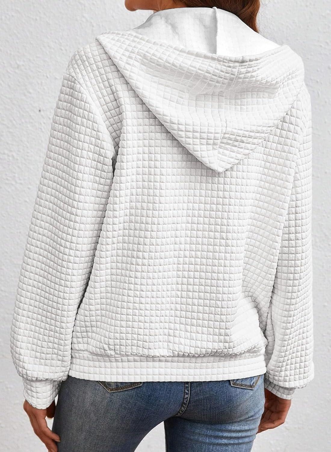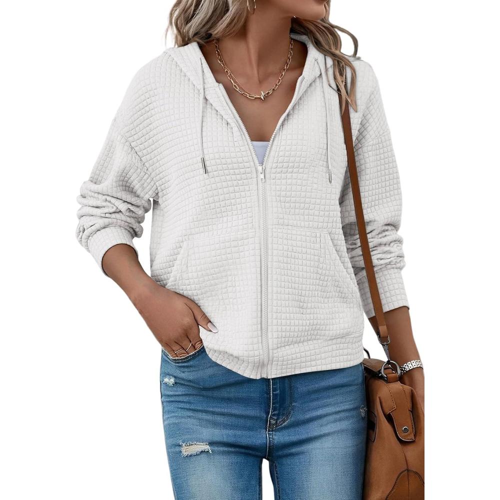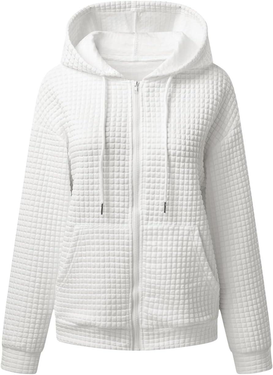 SHEWIN Womens Zip Up Hoodies Oversized Sweatshirt Fall Fashion Outfits 2025 Casual Waffle Hooded Jackets(White)